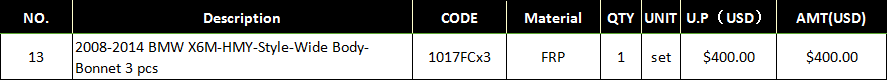1.2008-2014 BMW X6 HM style body kits - Bonnet 3 piece(1017FCx3)